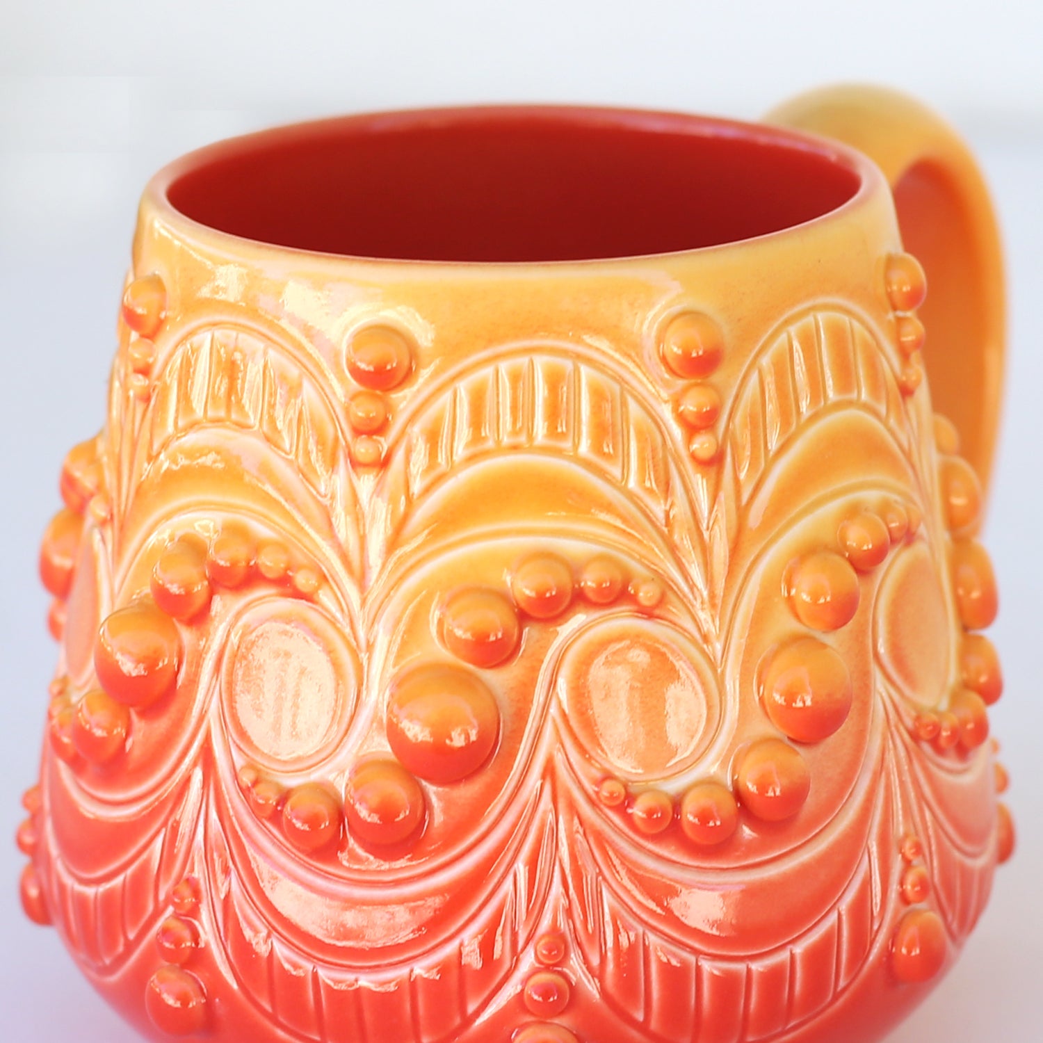 ombre orange mug with beautiful geometric glaze design hand painted by artist