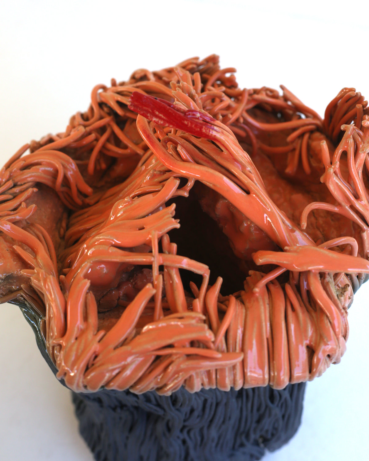Ceramic vessel covered in spaghetti thin clay