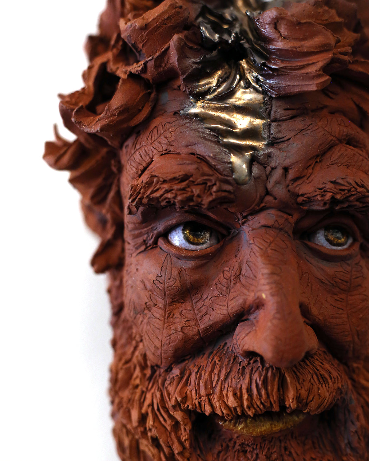 stoneware clay, porcelain, glaze, brass, paint