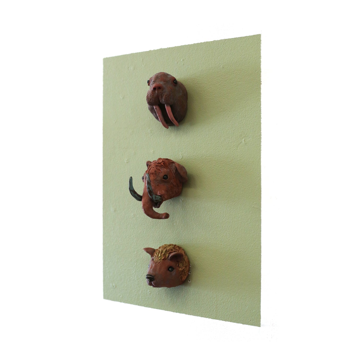 Ceramic wall hanging sculptureS: walrus, elephant, bear