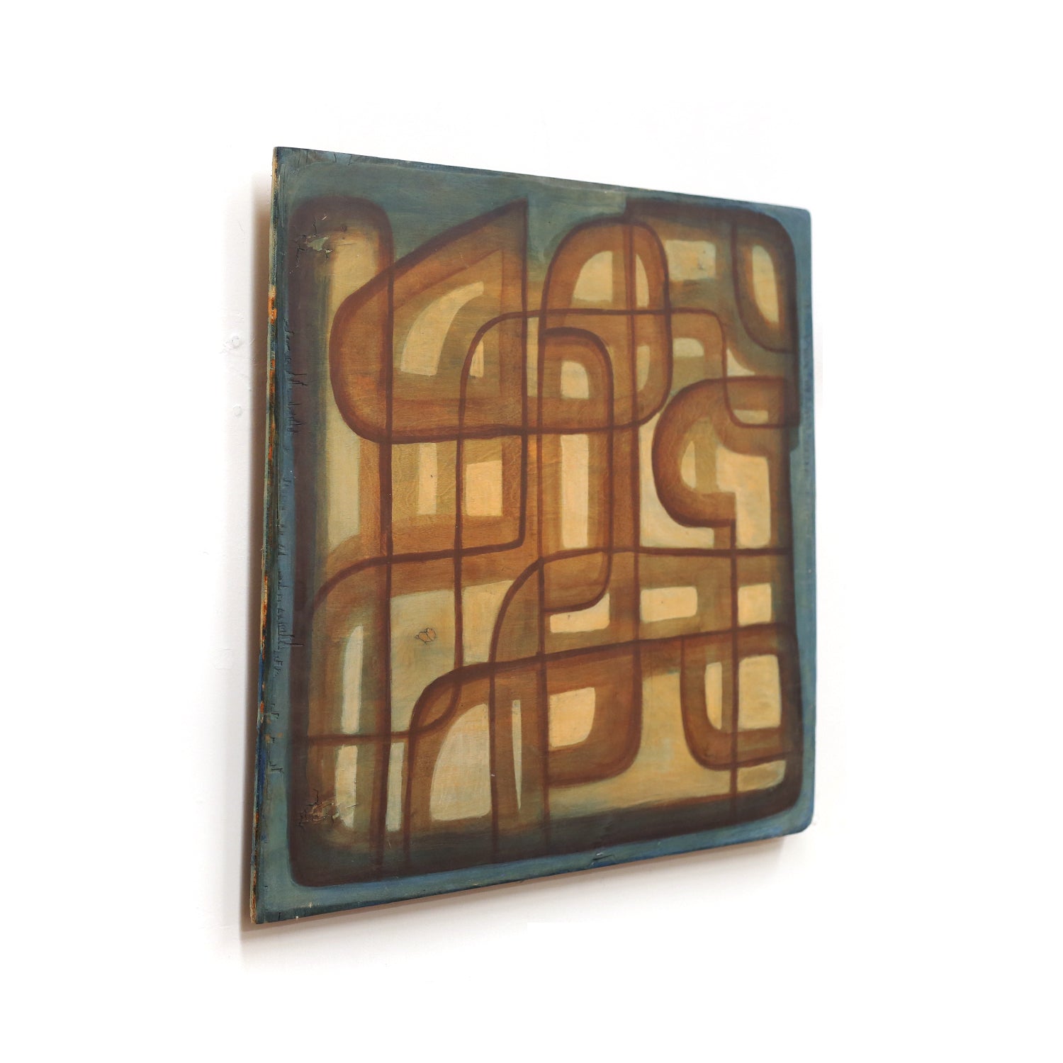 geometric oil painting on found wood