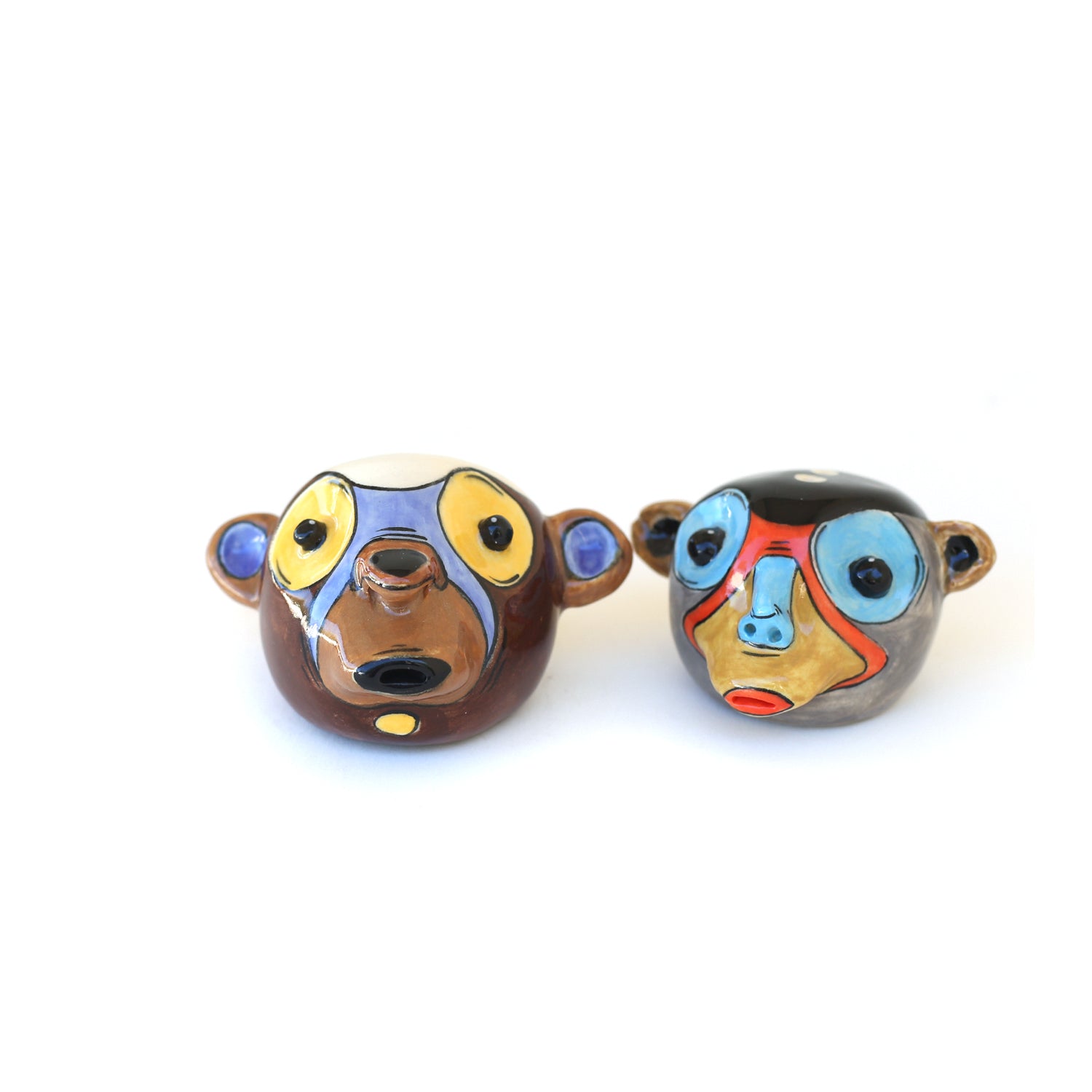 Mixed Media ceramic sculptures function as a salt and pepper shakers.