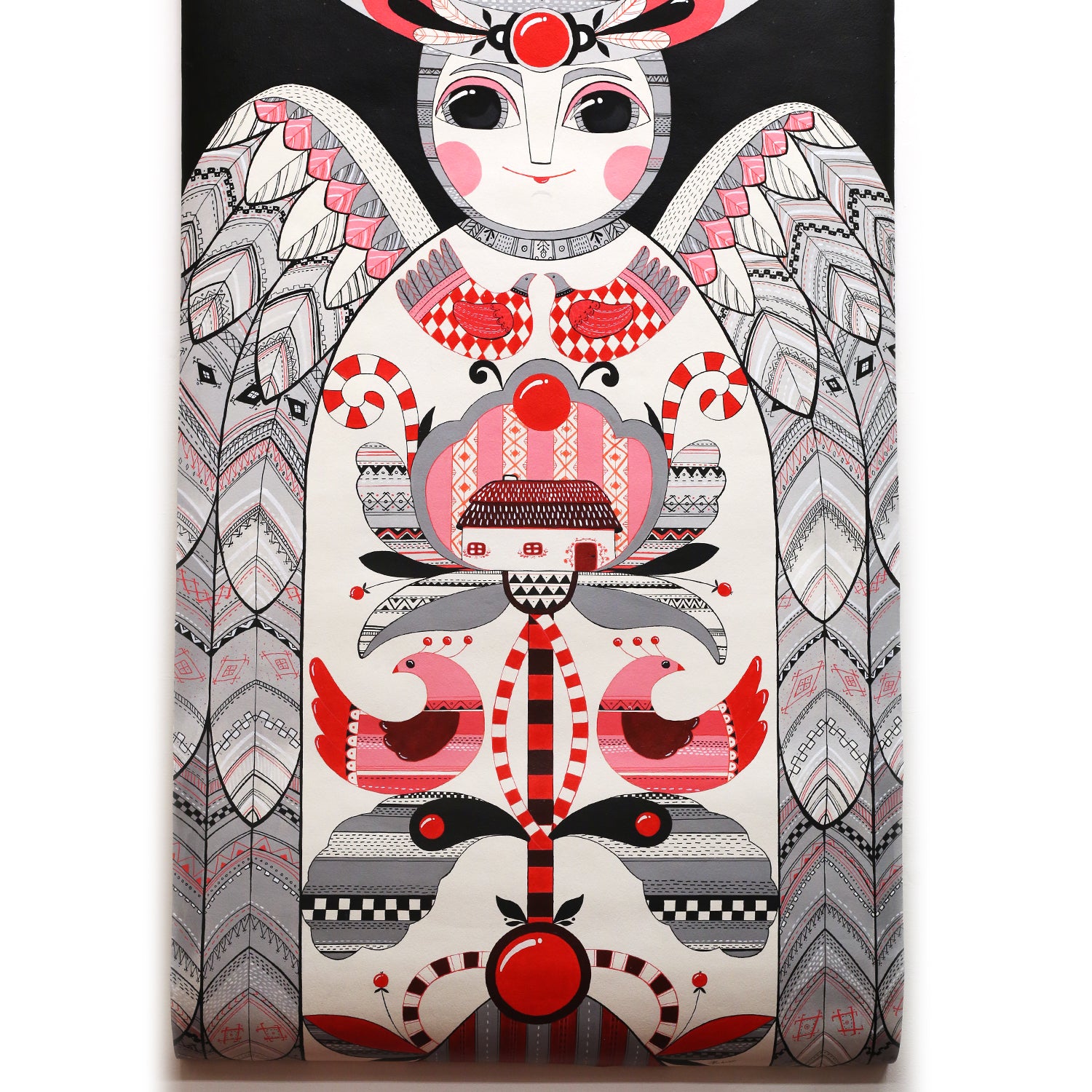 This piece is about the beginning of a new life. At its center is a house, a symbol of stability and comfort. Above it shines a happy star, illuminating and guiding growth and development.