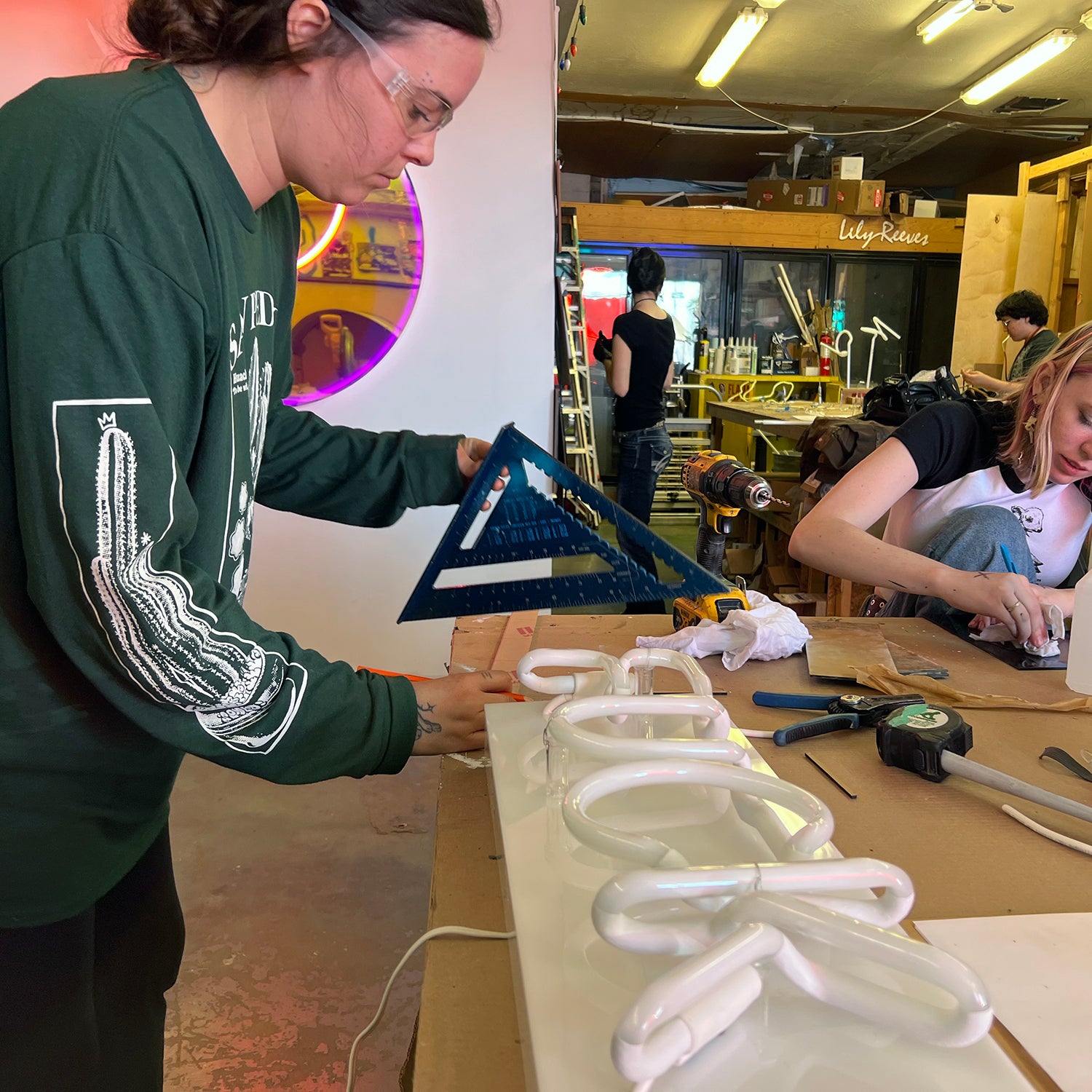 made from traditional glass neon, acrylic, hardware
