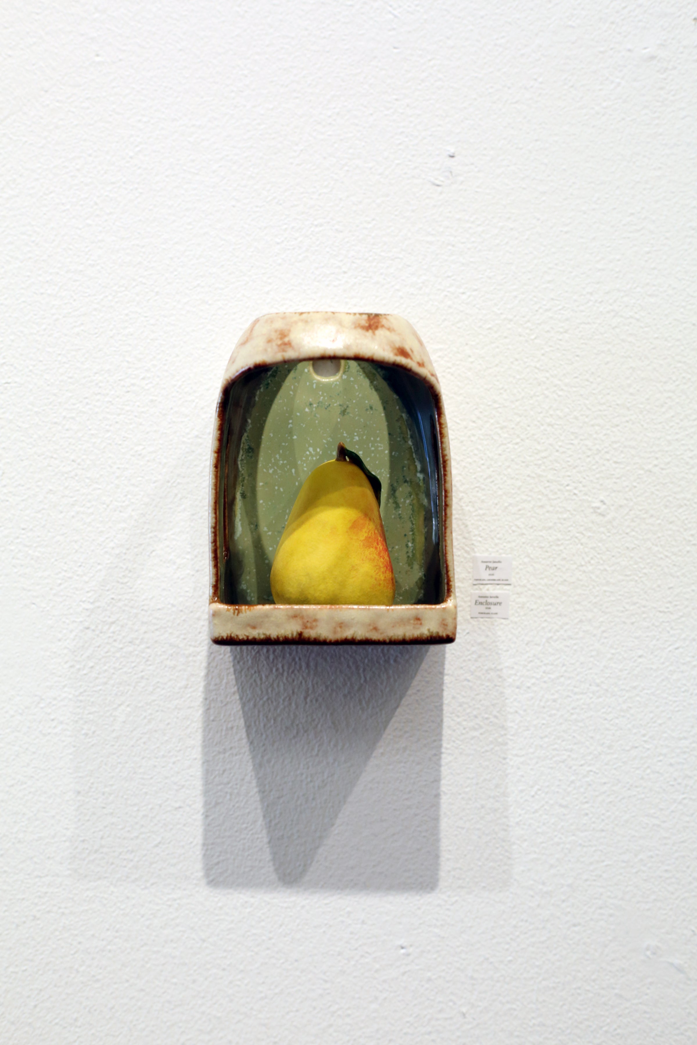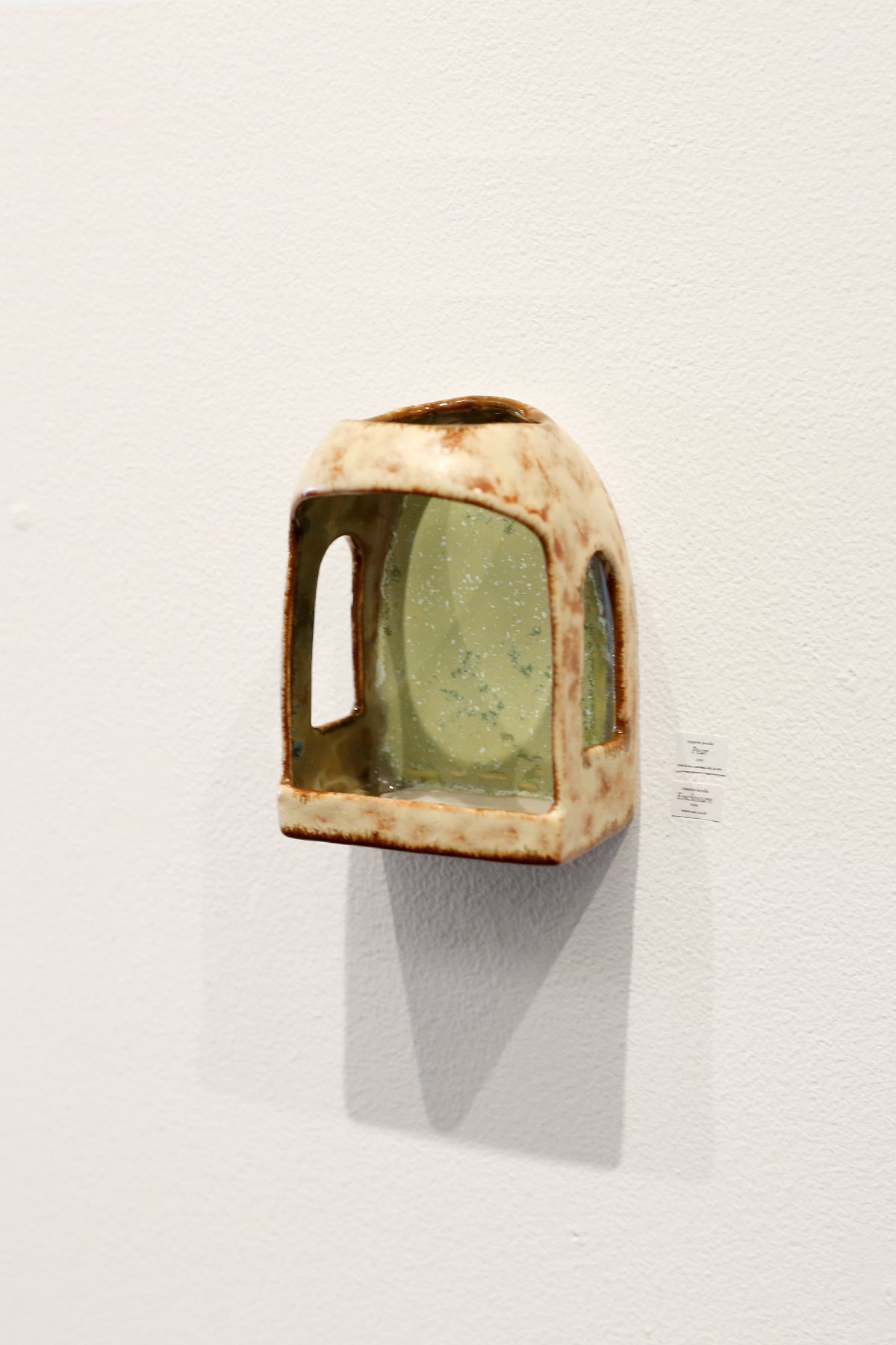 porcelain wall-hanging ceramic enclosure sculpture, detail painted with glaze