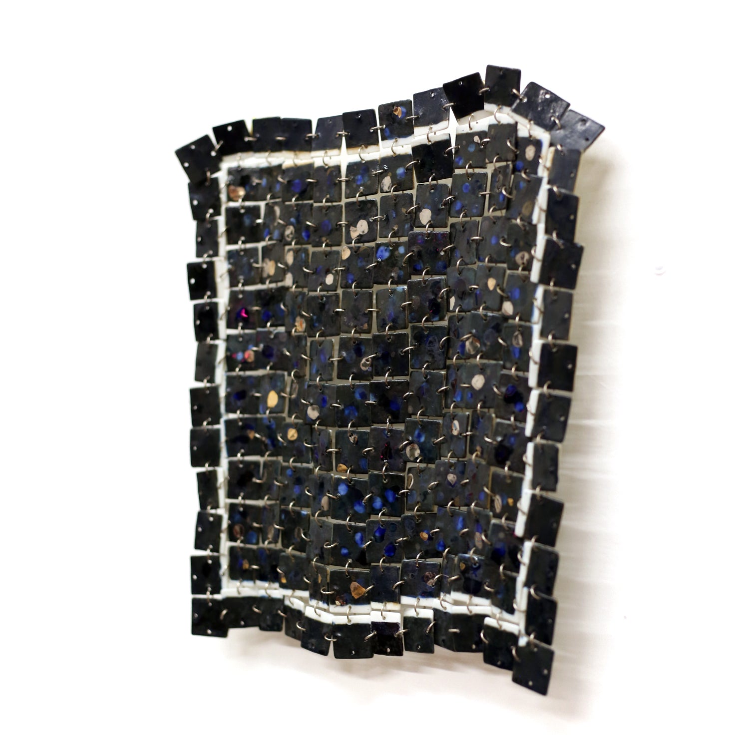 hand glazed porcelain squares quilted together creating a ceramic fabric